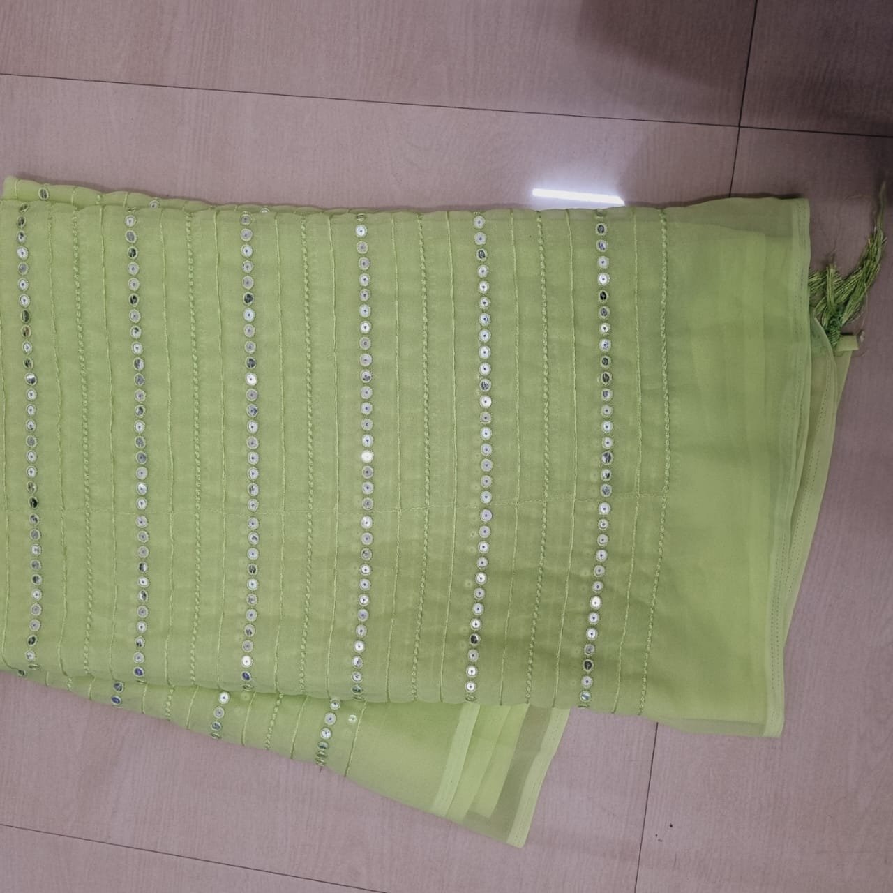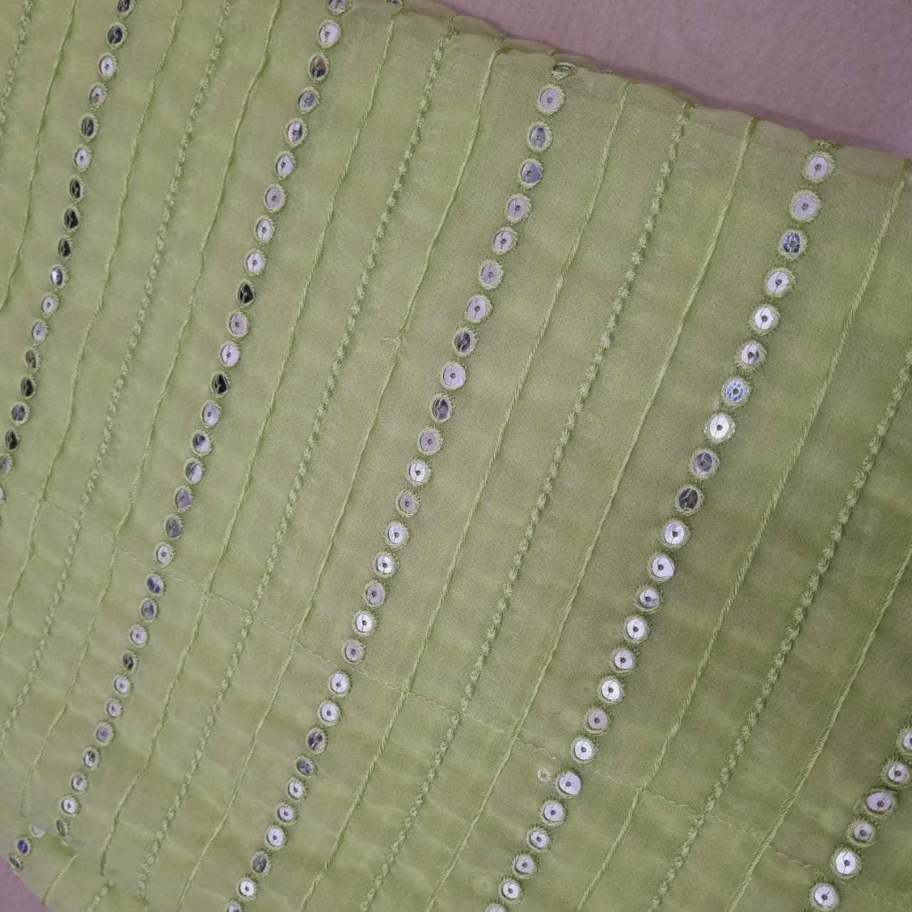 - Vertical Mirror Embellishments: Adorned with delicate lines of sparkling mirror work (or sequin work designed to mimic mirrors), adding a contemporary shimmer.