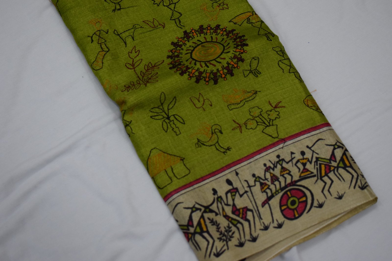 - Cultural Storytelling: Each figure and pattern on the saree reflects a rich cultural heritage, making it a wearable piece of art that tells a story.
