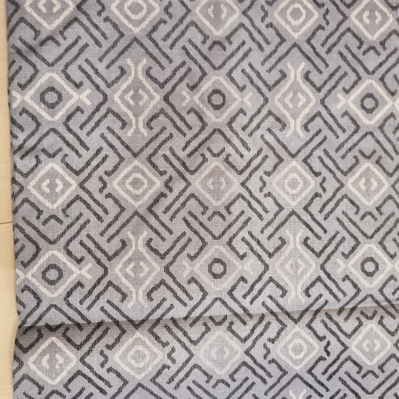 - Contemporary Geometric Print: Adorned with a stylish and intricate interlocking geometric pattern in varying shades of grey and white.