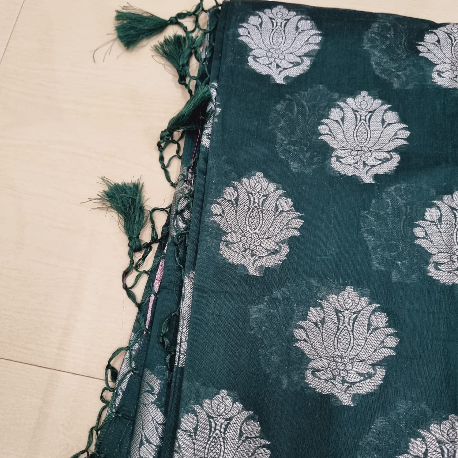 All-over silver lotus zari weaving for a delicate, traditional touch