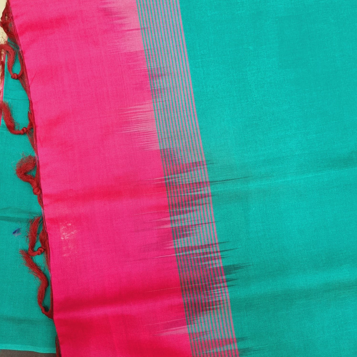 Ikat-inspired multicolor pallu adding a traditional artisanal charm