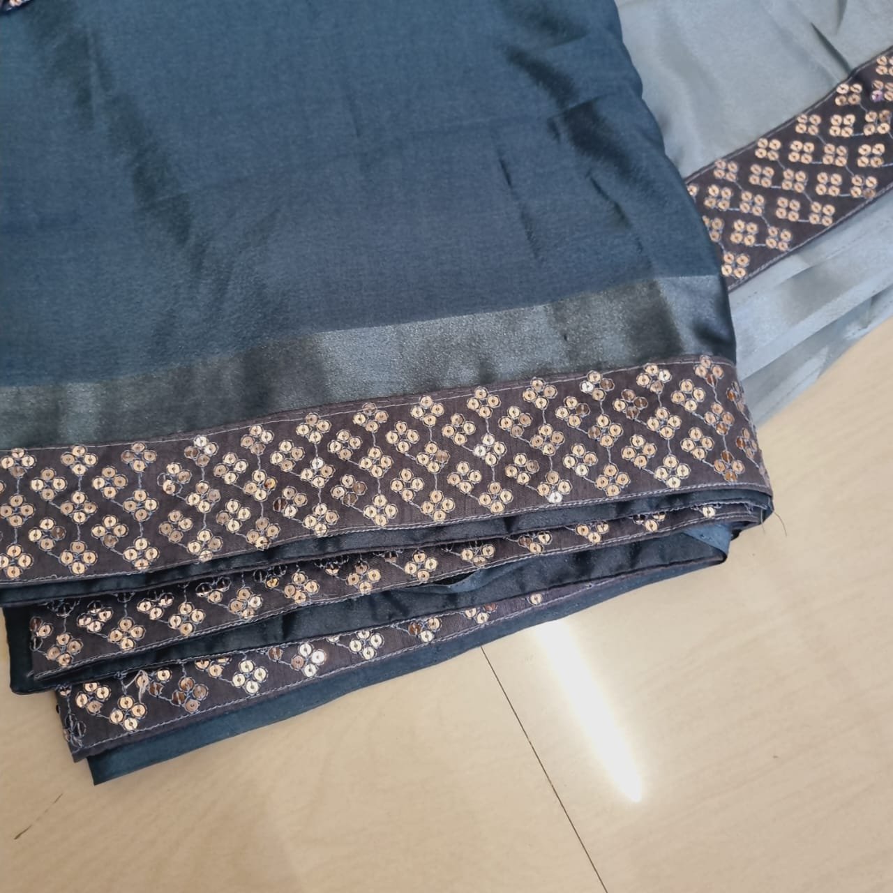 - Coordinating Blouse Piece: Comes with a matching blouse piece in the darker grey shade, featuring scattered sequin work to complete the ensemble.