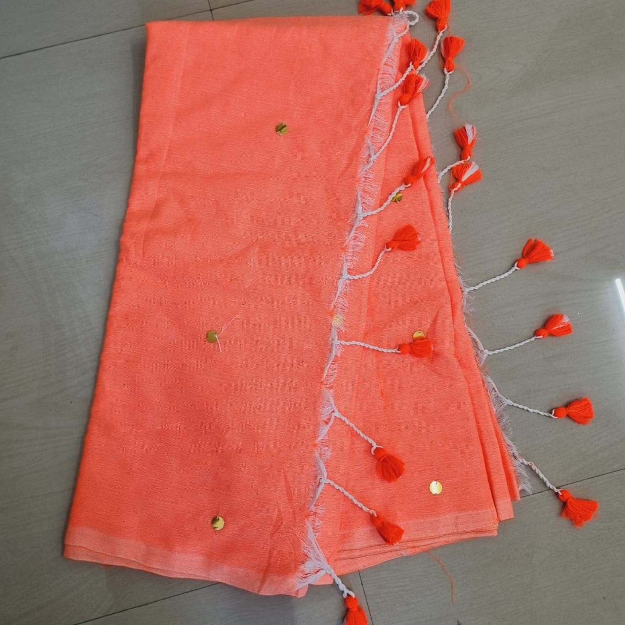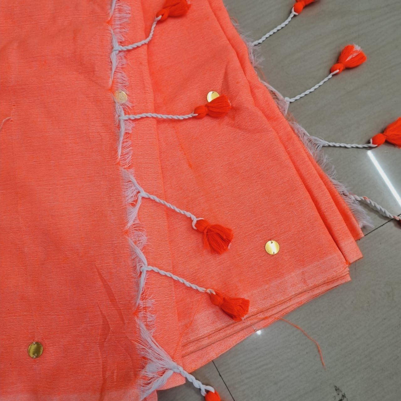 Vibrant neon orange khadi cotton fabric for breathable, lightweight comfort